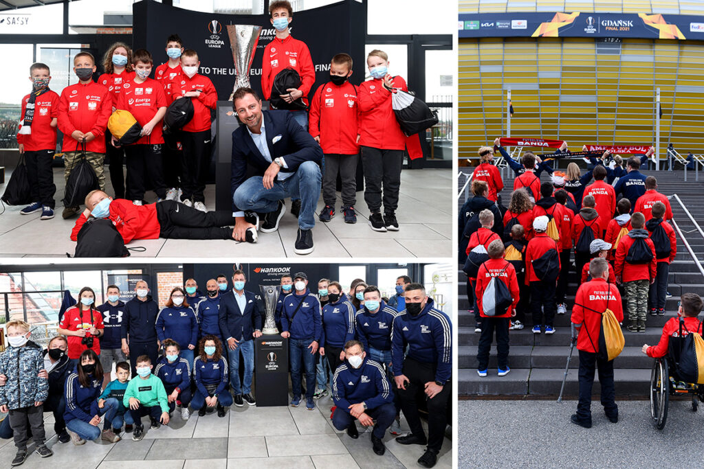 Un año más, el fabricante de neumáticos Premium Hankook, como parte de su larga colaboración con la UEFA y la final de la UEFA Europa League de este año en Gdańsk (Polonia), ha hecho posible que los niños vuelvan a asistir a la emocionante final. Las dos organizaciones sin ánimo de lucro elegidas participan en actividades relacionadas con el fútbol para niños. Amp Futbol Polska apoya a los niños con amputaciones y discapacidades físicas que quieren jugar al fútbol, mientras que el Programa Fair Play tiene como objetivo empoderar a las niñas y mujeres a través del fútbol en Polonia. Los niños no solo pudieron ver en directo la final de ayer entre el Villareal CF y el Manchester United F.C., sino que también recibieron mochilas exclusivas hechas con la lona original del círculo central, llenas de golosinas para disfrutar después del partido. También se les permitió fotografiarse con el legendario portero polaco Jerzy Dudek, y con el trofeo original del ganador antes del partido.