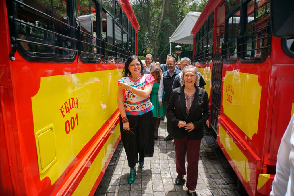 En la ceremonia de lanzamiento de los tranvías eléctricos participaron Maritza Nandayapa, Directora del Tranvía Turístico de la CDMX; Martha Ferrer, fundadora del Tranvía; Roberto Gottfried, Director General de MegaFlux; Luis Aranda, Director de la Secretaría de Movilidad (SEMOVI) de la capital del país; Roberto Sánchez Lazo, Director General de la Alcaldía Coyoacán y Alejandra Frausto, Secretaria de Turismo de la CDMX, quien encabezó el banderazo de salida de Frida y Diego por las calles llenas de historia de Coyoacán.