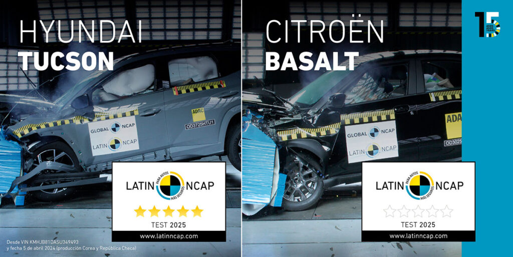 Latin NCAP, el Programa de Evaluación de Vehículos Nuevos para América Latina y el Caribe, publica hoy la sexta ronda de resultados de 2025, otorgando las primeras cinco estrellas a Hyundai en la historia del programa por su Tucson y cero estrellas al Citroën Basalt.